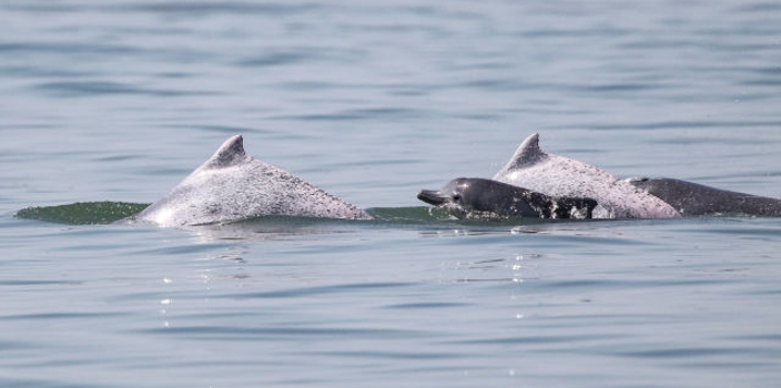 科研人员在海南岛西南海域目击到大量中华白海豚