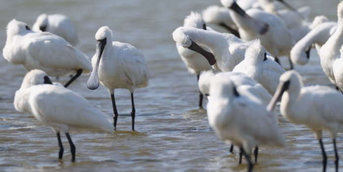 罕见!黑脸琵鹭大规模聚集海南东方湿地