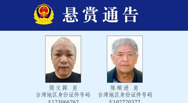 公安机关悬赏追捕两名台湾籍犯罪嫌疑人