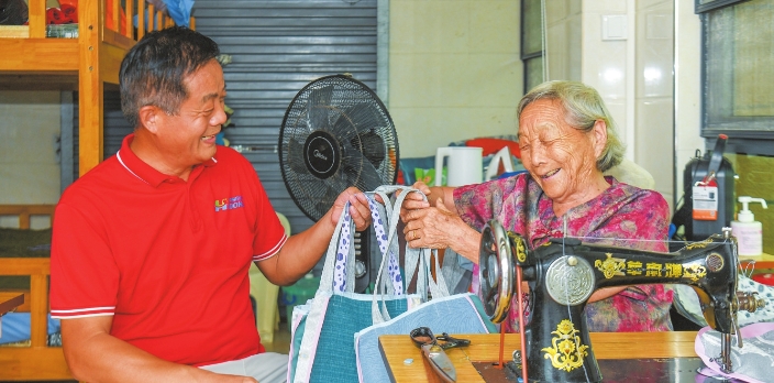 海口“环保袋奶奶”把旧衣废布变“限量爆款”